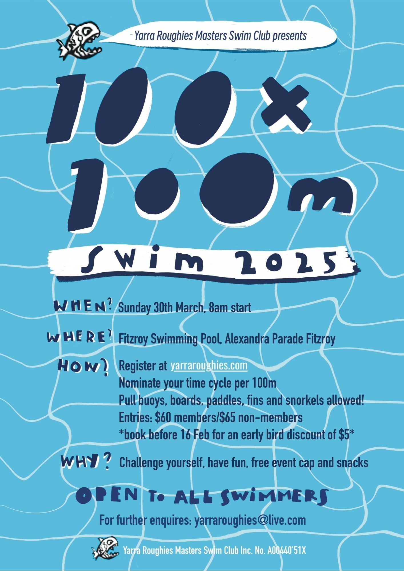 The Yarra Roughies are delighted to be hosting our annual 100 x 100m Swim again in 2025